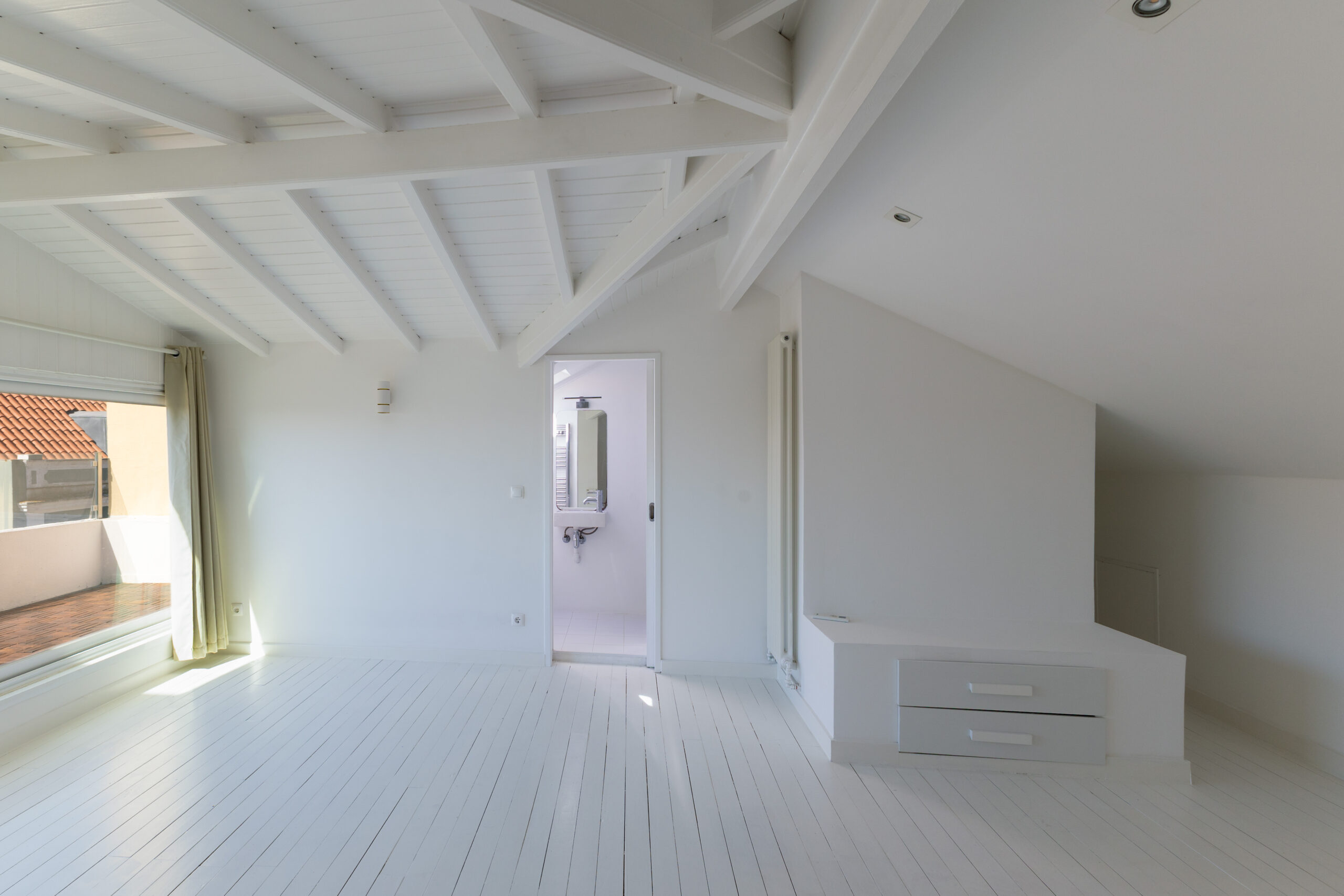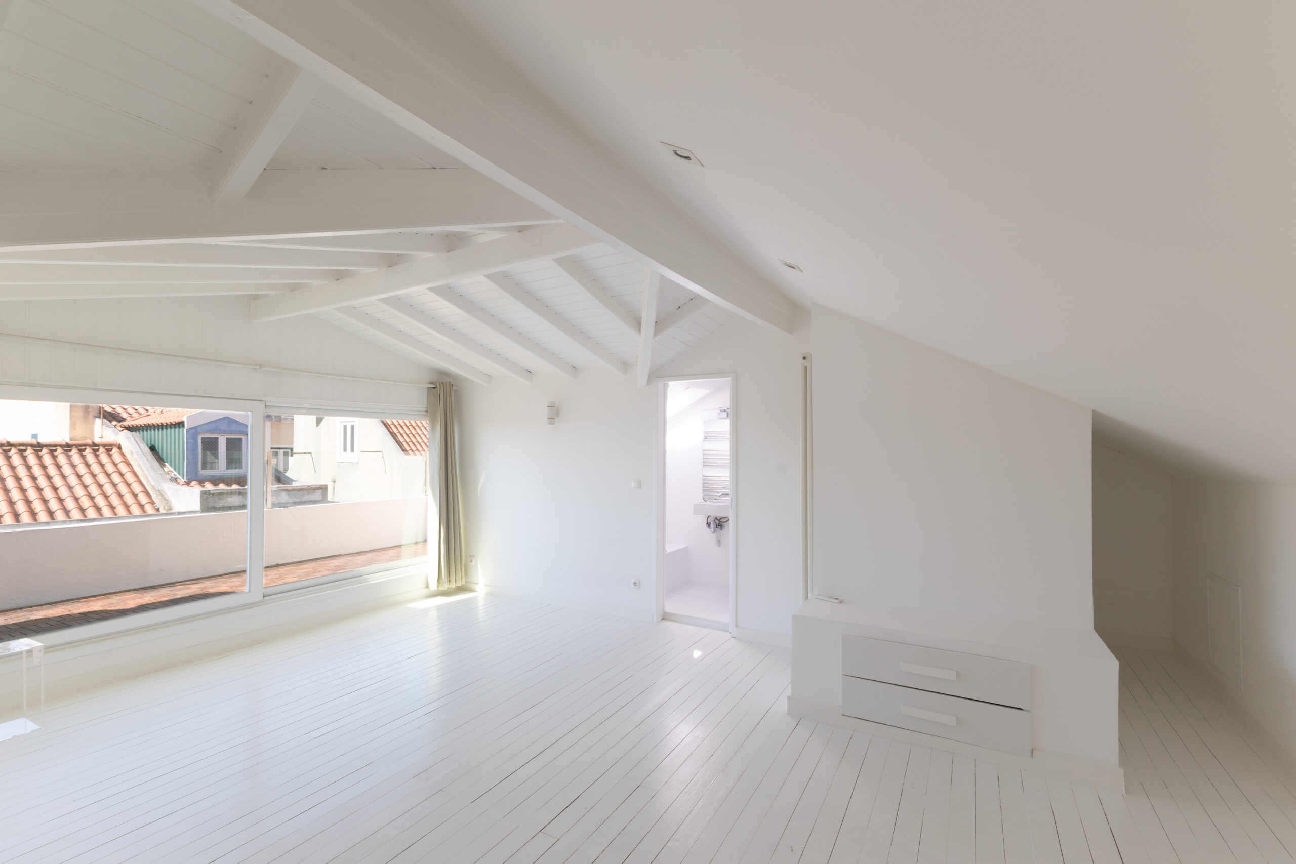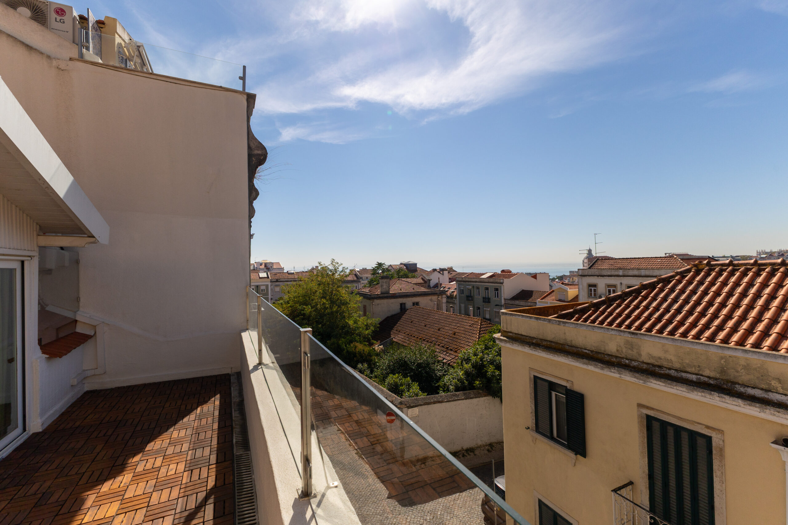 En montant au deuxième étage, la chambre principale (24m2) se distingue avec une salle de bains privative et une terrasse (10m2) offrant une vue imprenable sur le Tage, créant un espace parfait pour se ressourcer.